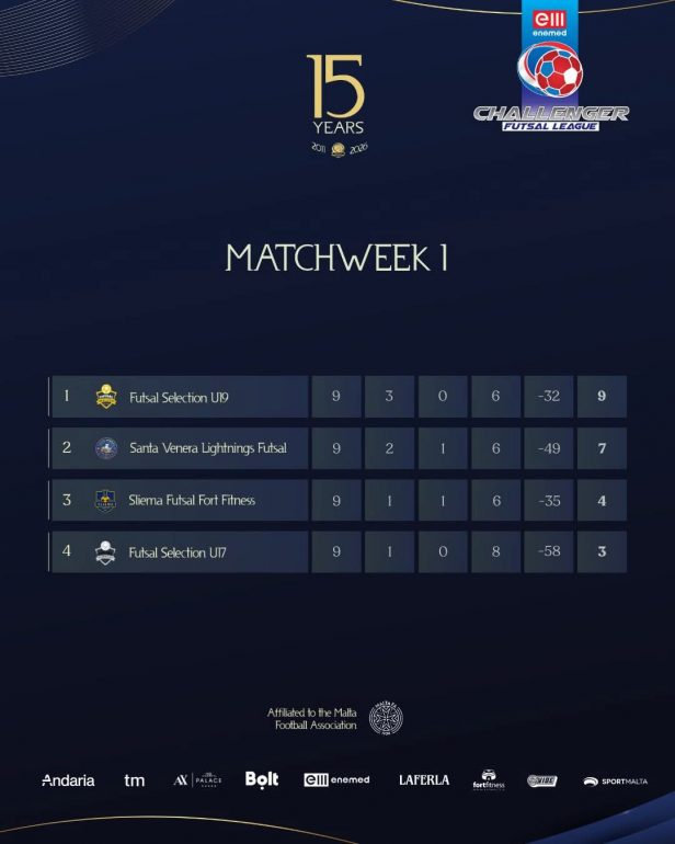 Current table leaders reflect this momentum: Futsal Selection U19 tops with 9 points, Santa Venera Lightnings trails closely on 7, Sliema Futsal Fort Fitness occupies third, and Futsal Selection U17 remains in fourth. These results intensify the competition as teams jockey for positioning in what promises to be a nail-biting finish.